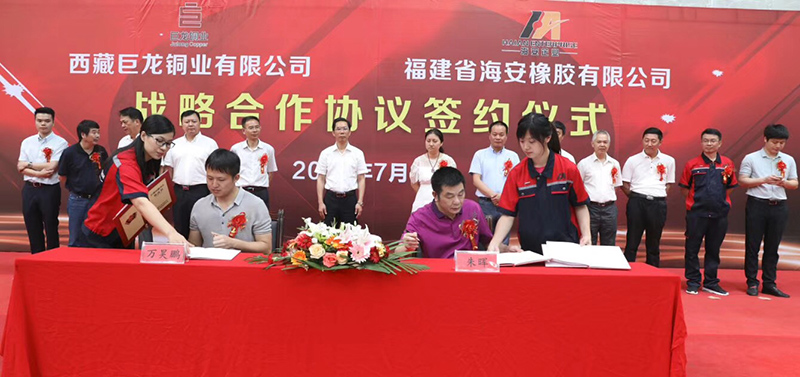 утром 3 июля 2018 года состоялась церемония подписания Haian Rubber Group Co., Ltd. и Тибет Джулонг Медь Ко., Лтд. Альянс по стратегическому сотрудничеству прошел в штаб-квартире в Хайане. Чтобы в полной мере использовать свои преимущества и добиться взаимной выгоды и общего роста, обе стороны подписали соглашение о стратегическом сотрудничестве. Подписание контракта знаменует собой установление долгосрочного и стабильного стратегического партнерства между двумя сторонами, закладывающего хорошую основу для быстрого и устойчивого развития компании Haian.